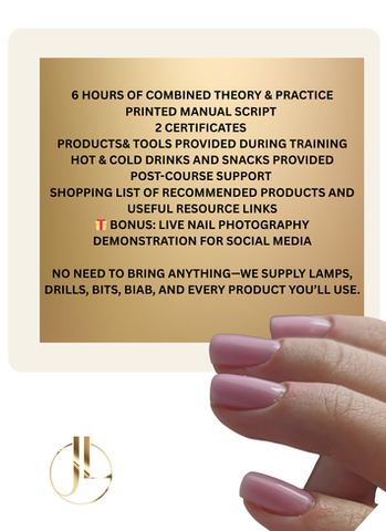No need to bring anything—we supply lamps, drills, bits, BIAB, and every product you’ll use.